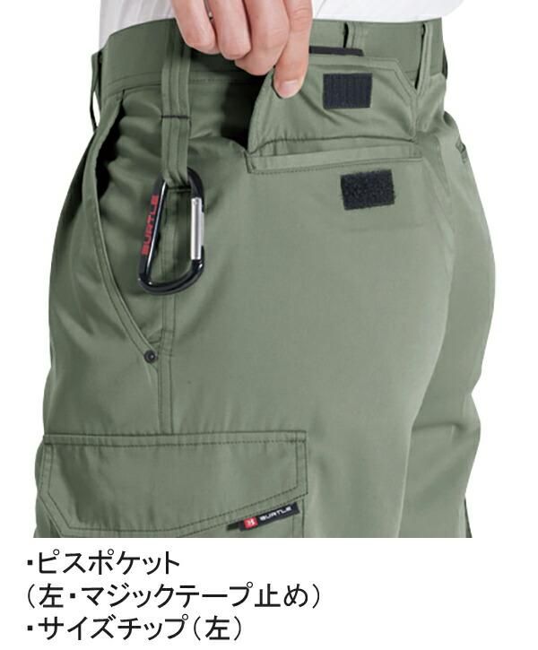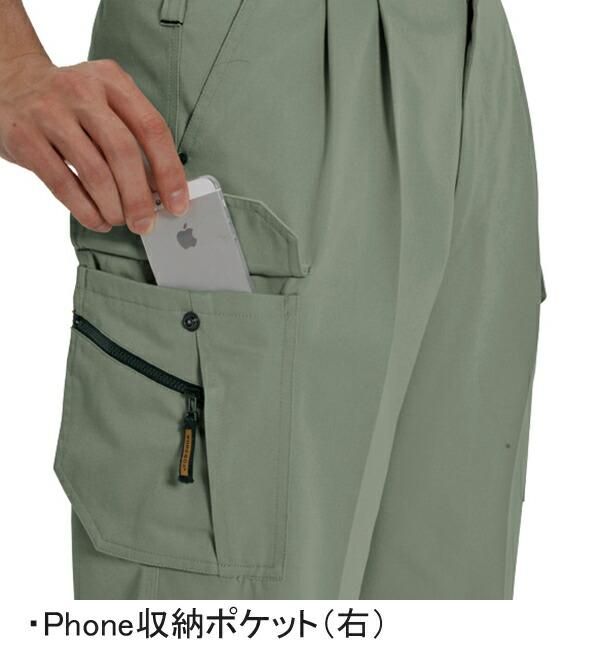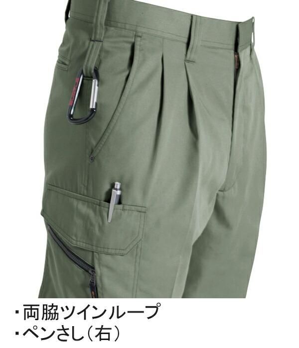 ■メーカー:バートル ■商品コード:6052 ■商品名:ツータックカーゴパンツ ■性別:男女兼用 ■季節:秋冬 ■使用素材:T/Cソフトツイル・制電ケア設計 ■混率:ポリエステル65%・綿35% ■形状特徴:両脇ツインループ ペン刺し(右) Phone収納ポケット(右) ビスポケット(左・マジックテープ止め) サイズチップ(左) 日本製T/Cソフトツイル素材を使用 優れた耐久性とソフトな着用感 かっこいい おしゃれ 作業服