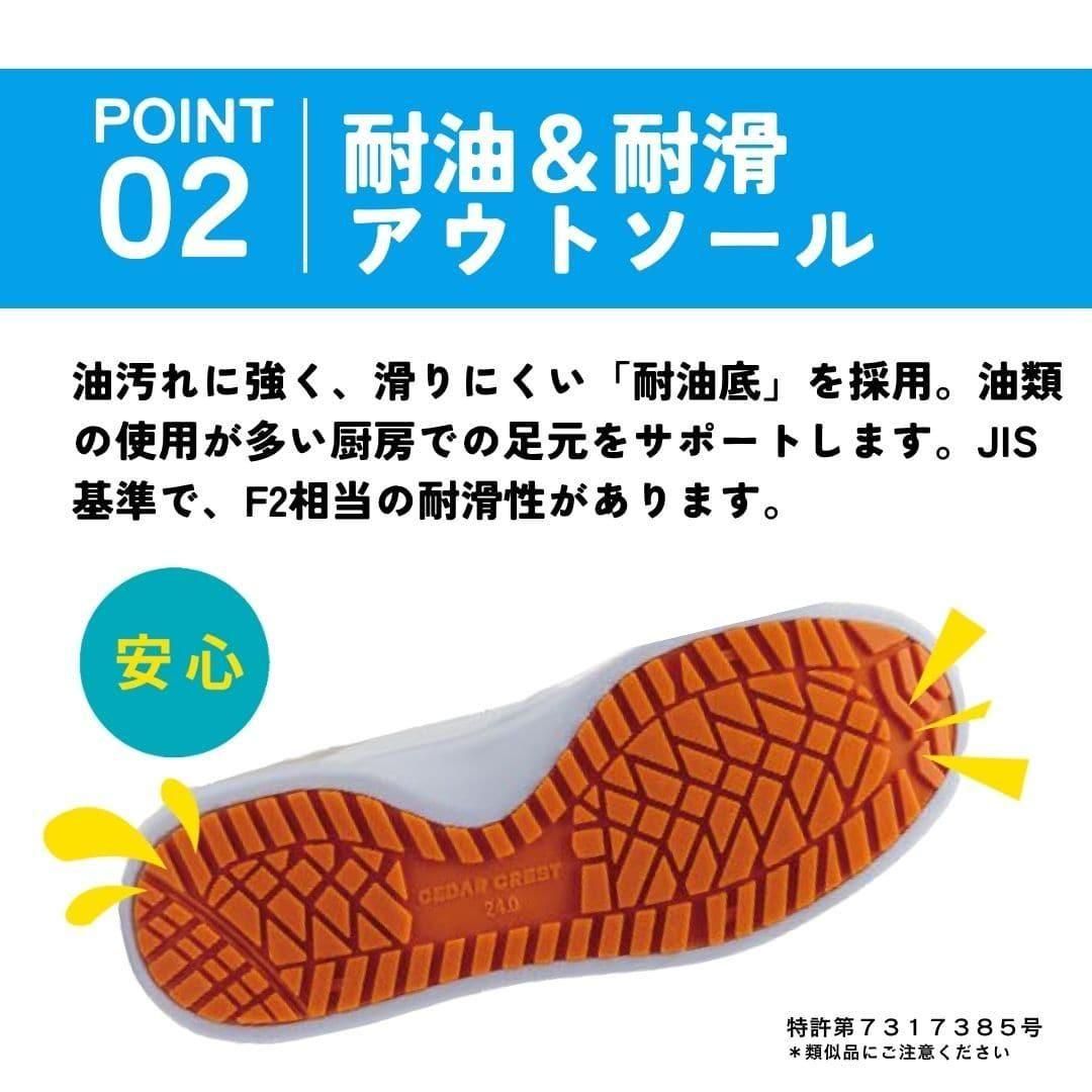 油汚れに強く、滑りにくい「耐油底」を採用。