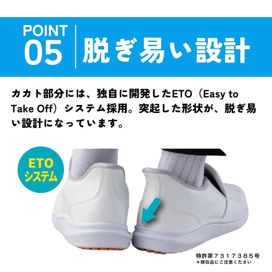 カカト部分には、独自に開発したETO(Easy to Take Off)システム採用。