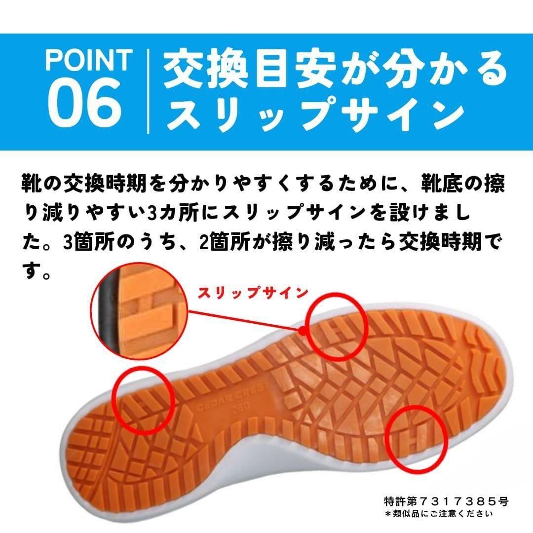 つま先に軽量樹脂製の先芯を装備し、安全性を確保しつつ、従来の鋼製先芯よりも軽やかな履き心地。