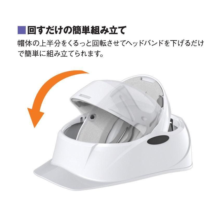 回すだけで簡単に組み立てられ、サイズ調整も容易で、安定した被り心地を提供します。