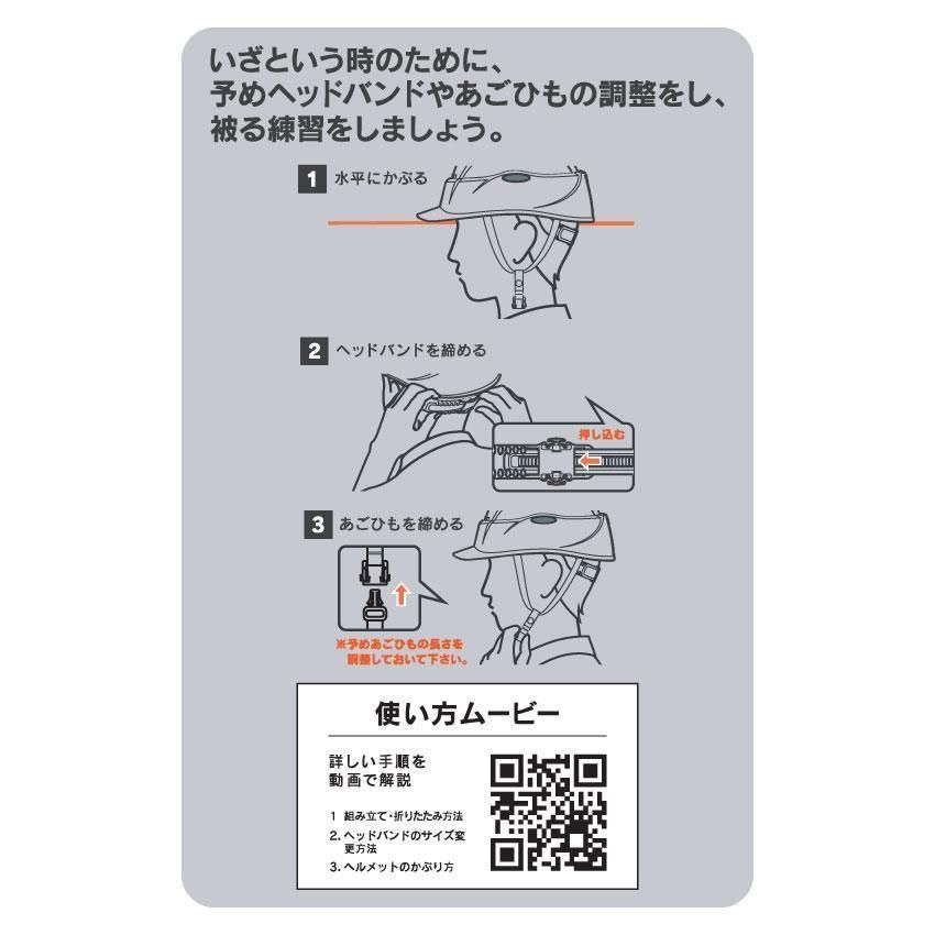 収納時の高さは約1/2になり、A4サイズのパッケージ入りなので、防災用として本棚や引き出しでの収納にも便利です。