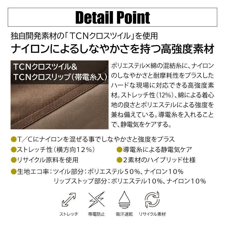 ニッカーズ ハーフパンツは、TCNクロス素材を使用した男女兼用の作業着です。ポリエステル50%、綿20%、複合繊維20%、ナイロン10%の混率で、耐久性と快適さを兼ね備えています。軽量でありながらしっかりとした作りで、オールシーズン着用可能です。スタイリッシュなデザインが特徴で、作業服としてだけでなく、カジュアルなシーンでも活躍します。サイズはSからLLまで幅広く対応し、さまざまな体型にフィットします。
