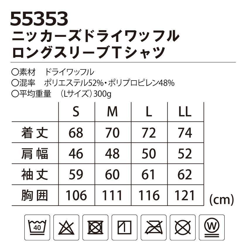 ニッカーズ tシャツ 55353 TSデザイン メンズ レディース 男女兼用 S-LL ドライワッフルロングスリーブTシャツ 作業着 作業服 制服 ユニフォーム 秋冬 TSDESIGN