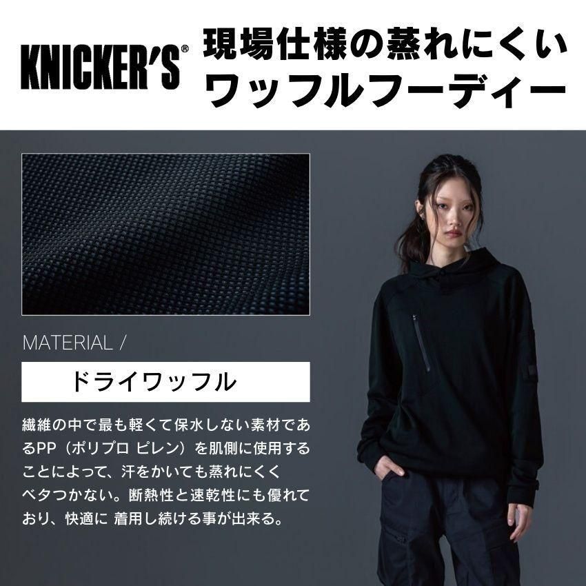 ニッカーズ ドライワッフルフーディーは、作業着としての機能性とスタイリッシュなデザインを兼ね備えた一着です。ポリエステル52%とポリプロピレン48%の混紡素材を使用し、軽量でありながら耐久性に優れています。ドライワッフル素材は通気性が良く、快適な着心地を提供します。作業服としてだけでなく、カジュアルなシーンでも活躍するこのフーディーは、日常の様々な場面での使用に最適です。