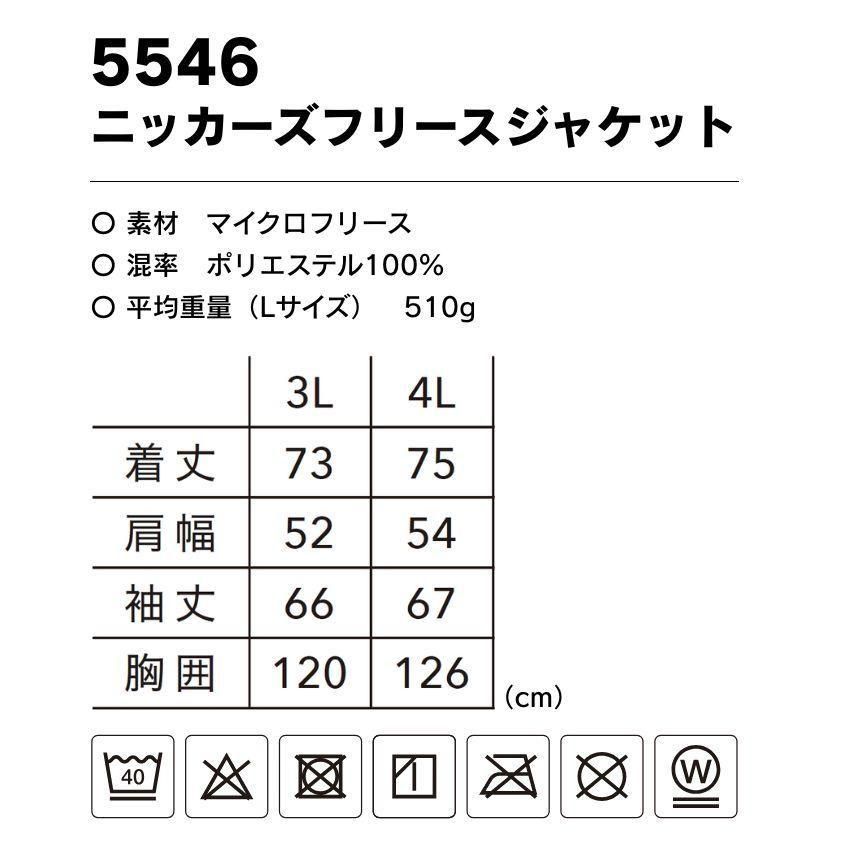 ニッカーズ フリースジャケット 5546は、秋冬の軽防寒に最適な一着です。マイクロフリース素材を使用し、ポリエステル100%の混率で、快適な着心地を提供します。平均重量510gの軽量設計で、作業着やユニフォームとしても活躍します。スタイリッシュでおしゃれなデザインが特徴で、機能性とファッション性を兼ね備えた上着です。