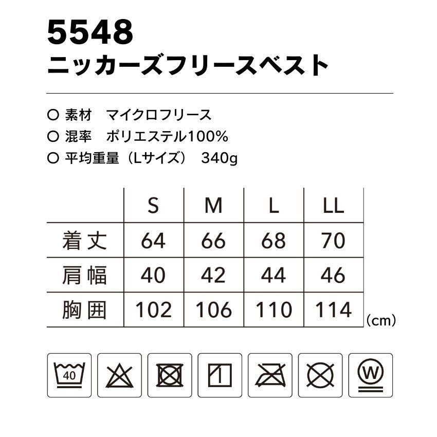ニッカーズ フリースベスト 5548は、秋冬の軽防寒に最適な一着です。素材にはマイクロフリースを使用し、ポリエステル100%のため、軽量でありながら保温性に優れています。平均重量は340gと軽く、動きやすさを確保。作業着やユニフォームとしても活用できるデザインで、スタイリッシュさも兼ね備えています。