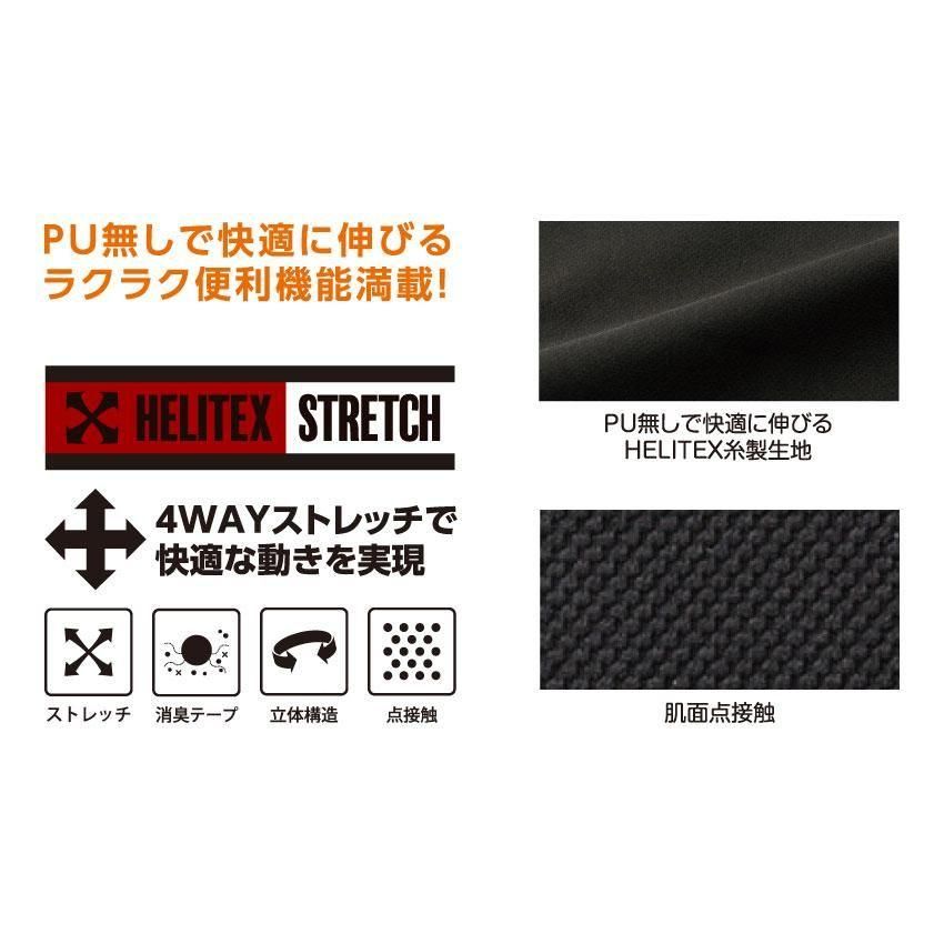 ポリウレタンなしで快適に伸びる「特殊繊維HELITEX」を使用し、4WAYストレッチにより自由な動きをサポートします。