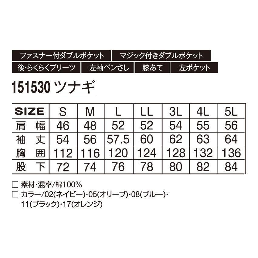 ツナギ 151530 全5色 男女兼用 4L-5L 長袖 つなぎ 作業着 作業服 ワーキングウェア ワークウェア シンプル かっこいい おしゃれ アタックベース ATACK BASE