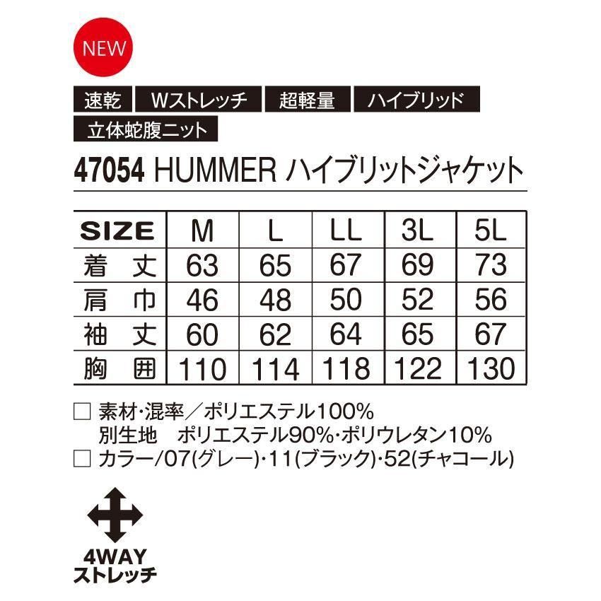 【2025年新作】 HUMMER ハマー ハイブリットジャケット 47054 全3色 男女兼用 3L 防寒着 作業着 秋冬 軽量 ダブルストレッチ 速乾 アタックベース ATACK BASE
